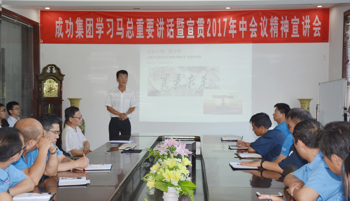 由集团文化品牌部承办的巡回宣讲,其主旨是“下基层面对面、讲精神实打实,突出主题,宣演结合,为实现全年目标鼓劲助威。”宣讲会在成功淮海发动机首次开讲,淮海发动机三楼会议室悬挂着醒目会标、40余位与会者端正的坐姿以及会议室整洁的氛围让小编心里为之一震。此次宣讲会由集团文化品牌部潘存海主持;集团文化品牌部赵春源紧紧围绕2017年中会议和马总重要讲话内容,准确把握Bwin必赢网站入口发展的方向,生动阐述了Bwin必赢网站入口年中会议的精神实质,对Bwin必赢网站入口未来的发展及转型进行了深入解读,整个宣讲过程激励人心。来自汽车销售公司的张少华坚持理论与实际相结合,生动的故事案例不断把学习引向深入,通过引经据典和列举一组组具体实例着力营造了浓厚的氛围,既有一定的理论高度,又有现实针对性。用生动的方式和精彩的内容解读了不可能如何变成可能,成功汽车发展至今历经了很多挑战,也解决了很多难题,虽然任重道远还有很多台阶要继续攀登;来自汽车事业部的李 从人力建设的角度分享汽车事业部如何稳扎稳打苦练内功,开创成功人力工作的新局面。慷慨激昂的宣讲了自己对于会议精神的领会,并结合自己的本职工作和人本思维的管理机制,详尽解析了员工和人才的选择,激发员工的热情,培养优秀的人才,团结高效执行力强的团队。通过一组数据形象的展示了Bwin必赢网站入口一路走来的变化,参会人员备受鼓舞!