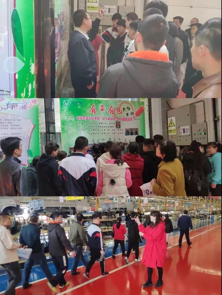 在成功汽车,总装部部长董俊超为新入职的同学讲解了企业文化及之前毕业生的突出贡献和取得的成绩。随后,引领新入职的特校生参观了生产车间、工作流程。