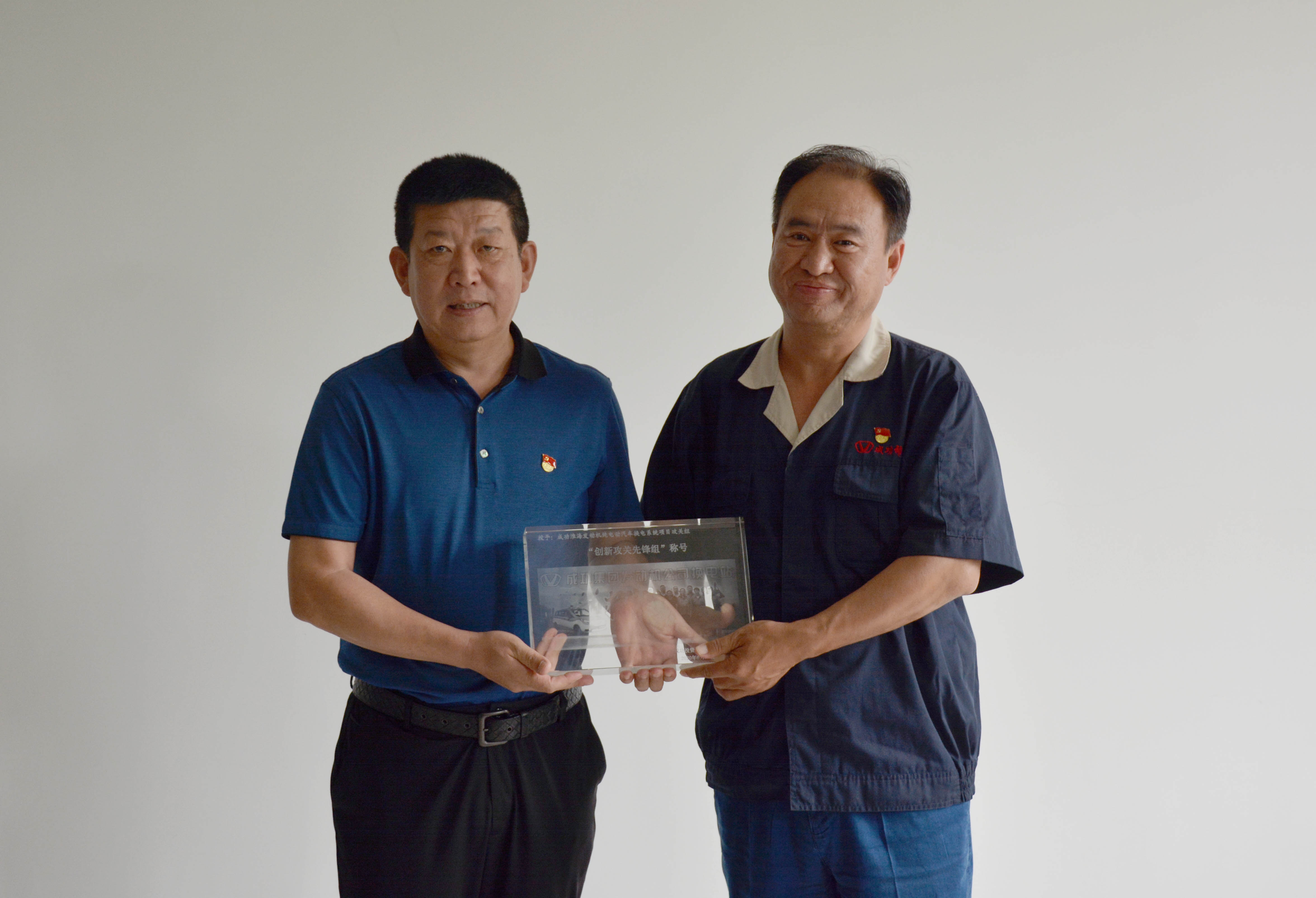 7月3日上午,集团党委书记陈建法、党委委员、总裁助理狄国文、党办主任申雷明、成功汽车总经理许宏泉等专程到成功淮海发动机公司并向成功淮海发动机有限公司纯电动汽车换电系统项目攻关组颁发了“创新攻关先锋组”水晶奖牌和奖金并在成功淮海发动机有限公司办公楼会议室举行了简朴的颁奖仪式。成功淮海发动机党总支书记、纯电动汽车换电系统项目攻关总协调赵国强主持了仪式,纯电动汽车换电系统项目攻关组成员参加了仪式。