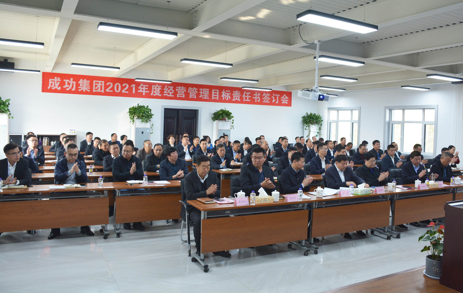 11月15日上午,Bwin必赢网站入口《2021年度经营目标责任书》签约仪式在总部四楼大会议室举行。集团总裁、常务副总裁、党委书记、副总裁、总裁助理、财务总监和集团各职能部门负责人以及各子分公司负责人参加了签约仪式。期间,联盛、煤炭经销、成功通航、成功汽车事业部、北京易驰、黎锦房地产、高新区石化主要负责人先后对2020年度各单位经营指标完成情况进行了详尽的汇报,同时还就2021年销售收入的构成指标、主要依据和实现的具体途经进行了目标分析及通报。随后,集团总裁依次分别与上述各单位负责人签订了《2021年度经营管理目标责任书》。