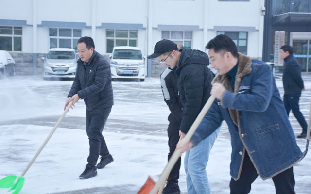 昨日到今天凌晨的这场雪,也算是今年的第三场降雪,这场喜雪再一次滋润了万物,亲吻了大地,使一度的干燥变得更加清爽怡人。然而,由于寒冷将融解的雪水结成了冰,加之,冰上覆盖的厚雪形成了光滑的路面,自然给人们的出行造成了极大的不便。集团综合部挑头组织这次清雪作业,总部各职能部门、成功煤炭、成功通航工作人员“一个也不拉”地迅速投入了这场清雪作业。集团党委书记陈建法、总裁助理狄国文放下手头的事情亲自参与此次清雪作业。虽然,天气比较寒冷,但总部各职能部门、成功煤炭、成功通航工作人员悉数参加,无论男职员,还是女职员,无论是部门负责人,还是业务主管,在清雪作业过程中都是普通的成功人,他们有的拿铁锨,有的拿扫帚,还有的借上现代除雪车,不惧寒冷,不怕手冻,干起活来一点也不推让,整个清雪作业场面显得就像“一家人”似的,合奏着一曲“团结、温馨”的凯歌。特别是整个清雪作业过程井然有序,热火朝天,干劲十足,经过将近一个多小时的全力作业,积雪被清理的干干净净,约200平米的总部大院褪去了皑皑的绒毯,恢复了原有的容貌,所有参与清雪作业的人脸上展露出了欣慰的笑容。