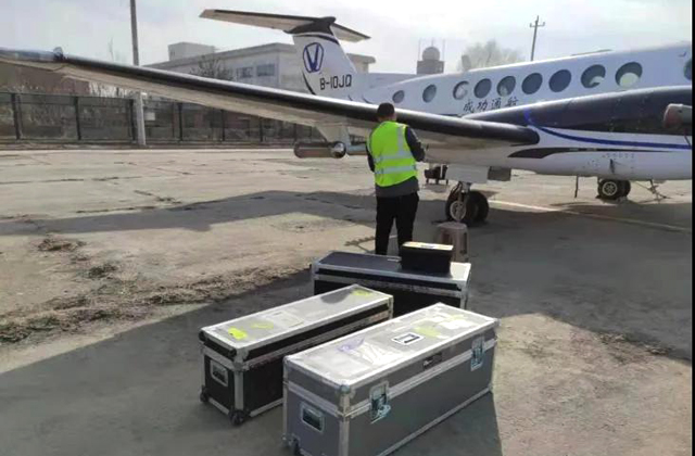 为完成国内大飞机自然结冰气象探测飞行,区域大气探测试验飞行作业,成功通航针对“时间紧、任务重、装备要求高”的特点,及时调整运力,首要保障任务按期实施。经过精心准备,成功通航的两架空中国王350飞机B-10JQ、B-102P飞抵蒲城内府通用机场,开始了结冰气象探测作业。