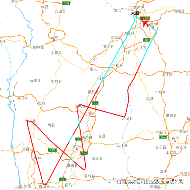 13时54分,B-3823从武宿机场腾空而起,冲向茫茫云海,开始了春节期间的首次人工增雨作业,飞行轨迹途经太原、大宁、翼城、沁源等县市,当日飞行3小时42分。初二下午开始,太原、长治、临汾地区普降甘霖……