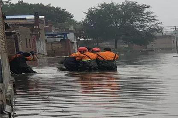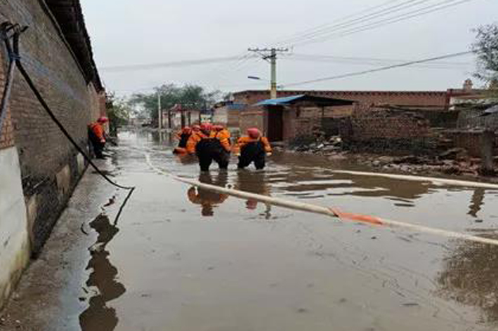 该村积水面积大,地形复杂,最深处达2米。经过6个多小时的长途跋涉,救援队伍来不及做任何休整,在确定排水泵安置位置后,立即开始安装排水泵、软管、发电机等救援装备抽排积水,投入到紧张的抢险工作中。