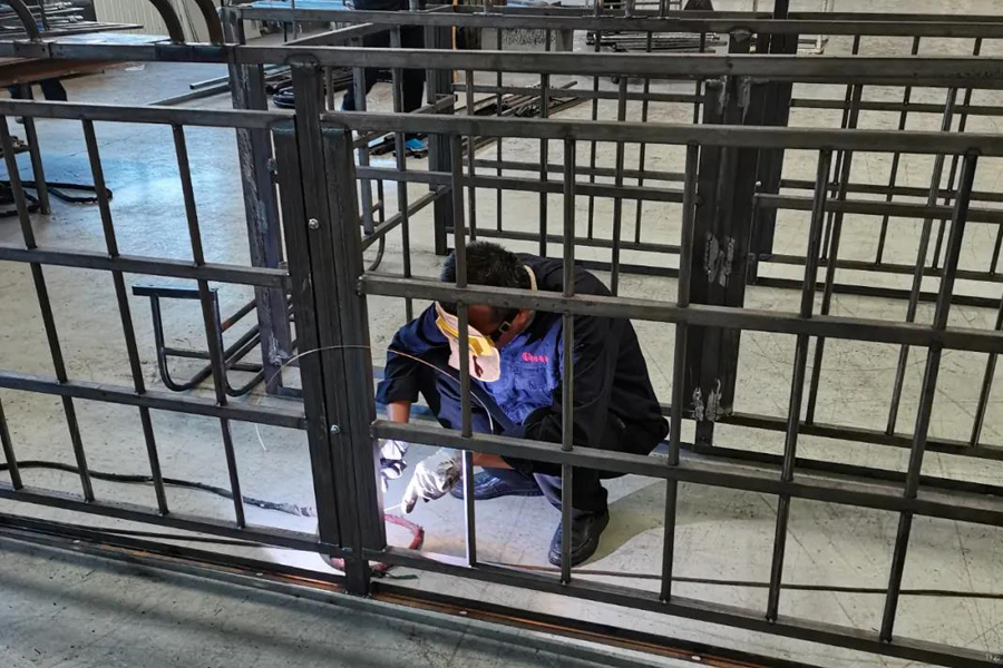 后勤人员们不辞辛劳,在完成本职工作以外积极承担不锈钢护栏的下料和点焊工作。