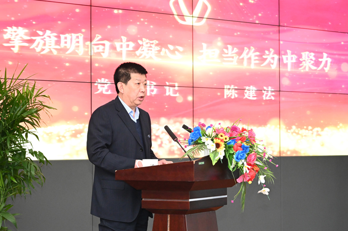 集团党委书记陈建法代表党委在会上作了题为《擎旗明向中凝心 担当作为中聚力 全方位开创集团高质量发展新局面》的党建工作报告。《报告》从四个方面总结了2021年集团党建工作,指出2021年是集团学史明志,坚持思想引领“奋进”的一年;是聚心聚力,品牌形象塑造“给力”的一年;是夯基固本,组织作用发挥“雄起”的一年;是肩扛红旗,彰显成功大爱“井喷”的一年。总结出三点启示和收获:一是只有注重围绕中心开展工作,才能更好地彰显党建作用。二是只有注重抓好组织作用发挥,才能更好地激发员工动力。三是只有注重挑起社会责任担当,才能更好地展示企业价值。《报告》还指出,2022年是集团实现第一个百亿目标的奋进之年,是迎接二十大召开的欢庆之年。集团党建工作要以保障企业发展为中心,注重发挥“两个作用”,秉持初心,守正创新,建好建强各级党组织,助推集团全方位高质量发展,以实际行动迎接党的二十大胜利召开。《报告》还从四个方面提出了具体的要求:一是抓理论武装,强精神之钙;二是抓组织建设,固发展之基;三是抓融合发展,造双赢态势;四是抓文化培树,立成功品牌;《报告》最后强调新的征程已经开启,让我们满怀信心,高举新时代党的伟大旗帜,牢记初心使命,�力同心、攻坚克难、勇毅前行,为奋力实现集团“百亿”目标, 为迎接党的二十大召开献礼!