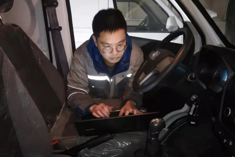 车辆装配完成后,新能源技术部人员对电机,整车控制器,电池包,智能车载终端等核心零部件进行了技术参数校准和系统程序校核调试,对整车慢充、快充、上下电等操作进行了可靠性试验。