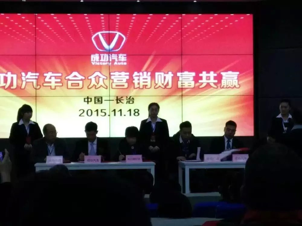 2015年11月18日注定是一个值得纪念的日子,成功汽车隆重的邀请了,来自全国重点区域的汽车经销商朋友们:相聚在长治,相聚在太行山上这个有着悠久历史的文化名城;共同商讨成功汽车十三五发展大计。颁布成功汽车:新营销、新举措、新模式、新产品、新政策。通过本次盛会,增进了友谊、促进合作、共同发展。