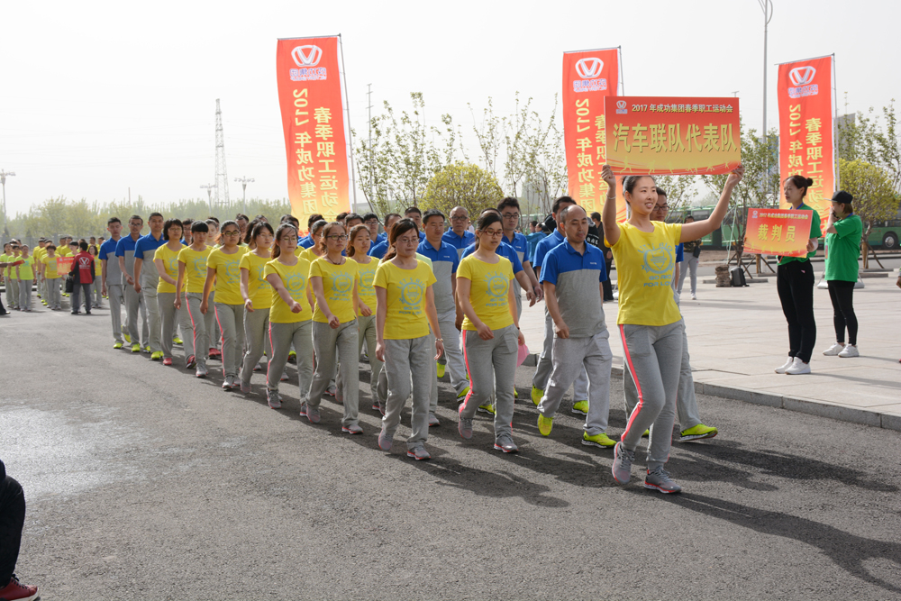 雨后的大地清新气爽,微露的晨曦和煦如春。成功汽车办公大楼前装饰一新的开幕式现场披上了节日的盛装,硕大的红色气球和红色的长幅标语随风飘逸,十数面标旗点缀在大楼广场四周,更加显得喜庆非凡。上午九时许,裁判员、运动员组成的方队伴着《运动员进行曲》依次通过大会主席台,受到集团领导和观众的一片喝彩。队列式结束,整个大会现场奏响了雄壮的《国歌》;随后,集团副总裁陈国东致开幕辞,运动员、裁判员代表分别宣誓;集团总裁马国利宣布2017年集团春季职工运动会开幕。