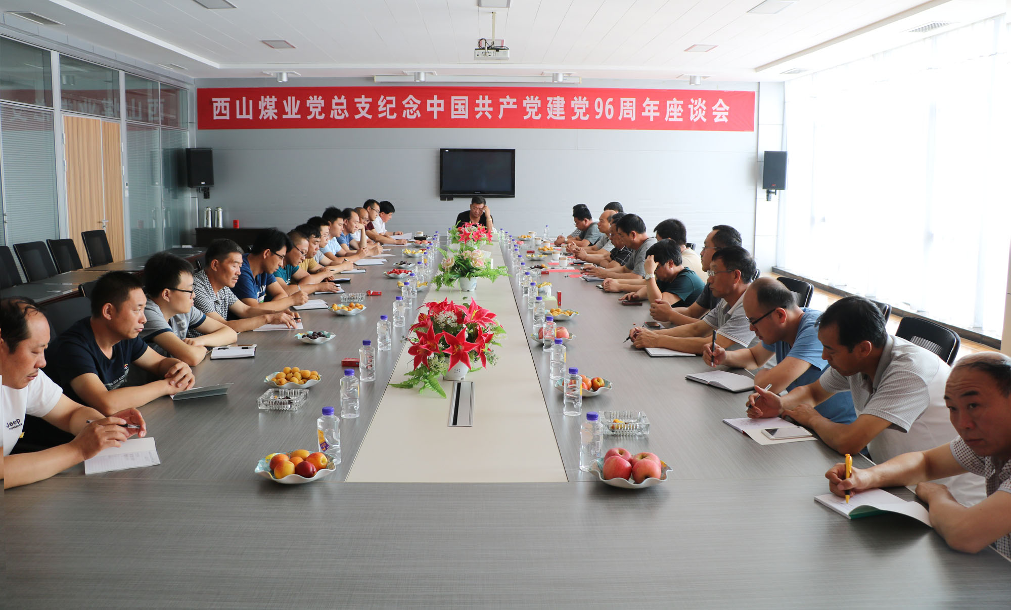 7月1日上午,为纪念党的96岁生日,矿产事业部及下属各矿党员、预备党员在西山煤业党员活动室召开了纪念中国共产党成立96周年座谈会。25名党员参加了座谈。座谈会上西山煤业党总支书记段长明向党员送上了节日祝福,并做了党建工作汇报。紧接着预备党员在党旗下庄严宣誓,向党表明了自己的决心。