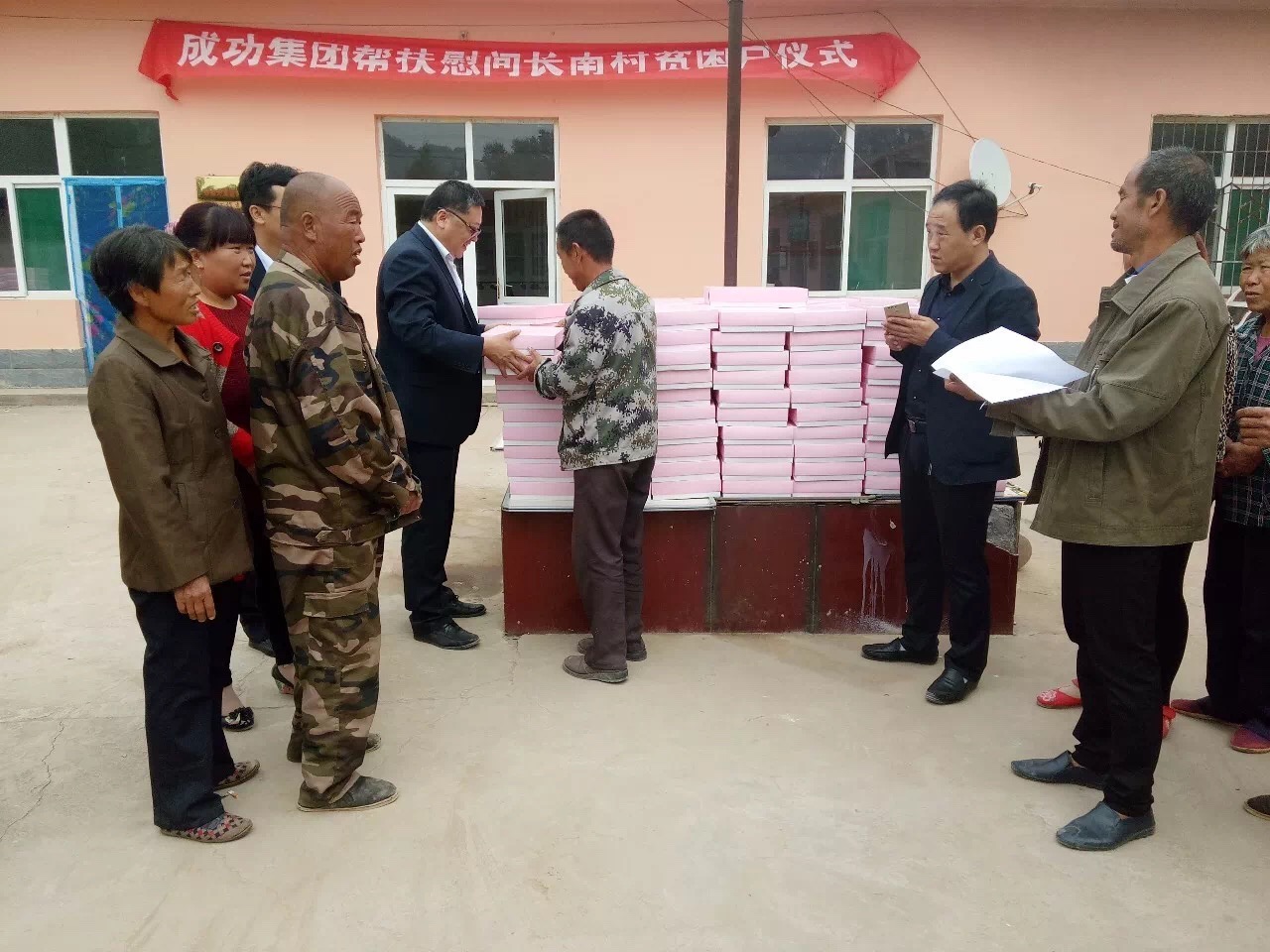 集团综合部部长周雷波代表总裁马国利进行了慰问讲话;资产财务部部长武卫向慰问村民发放了慰问品。之后,在石盘开发区书记李耀清、副书记郝树福和长南村委负责人的陪同下,扶贫组人员分别到项目实地进行了考察。