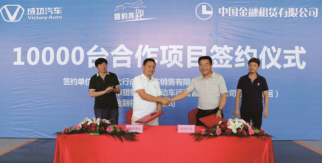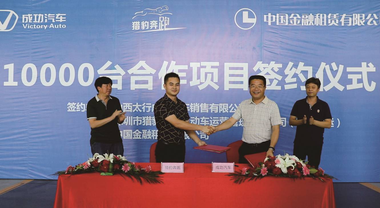 继成功与一微签订5000台成功V2E电动汽车3亿元订购协议之后,8月4日下午,成功汽车与深圳猎豹奔跑电动车运营管理有限公司及铁骑速运(深圳)有限公司在长治直营店举行签约仪式,此次签约分别与猎豹奔跑、铁骑速运促成5000台成功V2E电动汽车6亿元大单。成功汽车事业部副总经理高利平、中国金融租赁有限公司总监陈言涛出席了签约仪式。