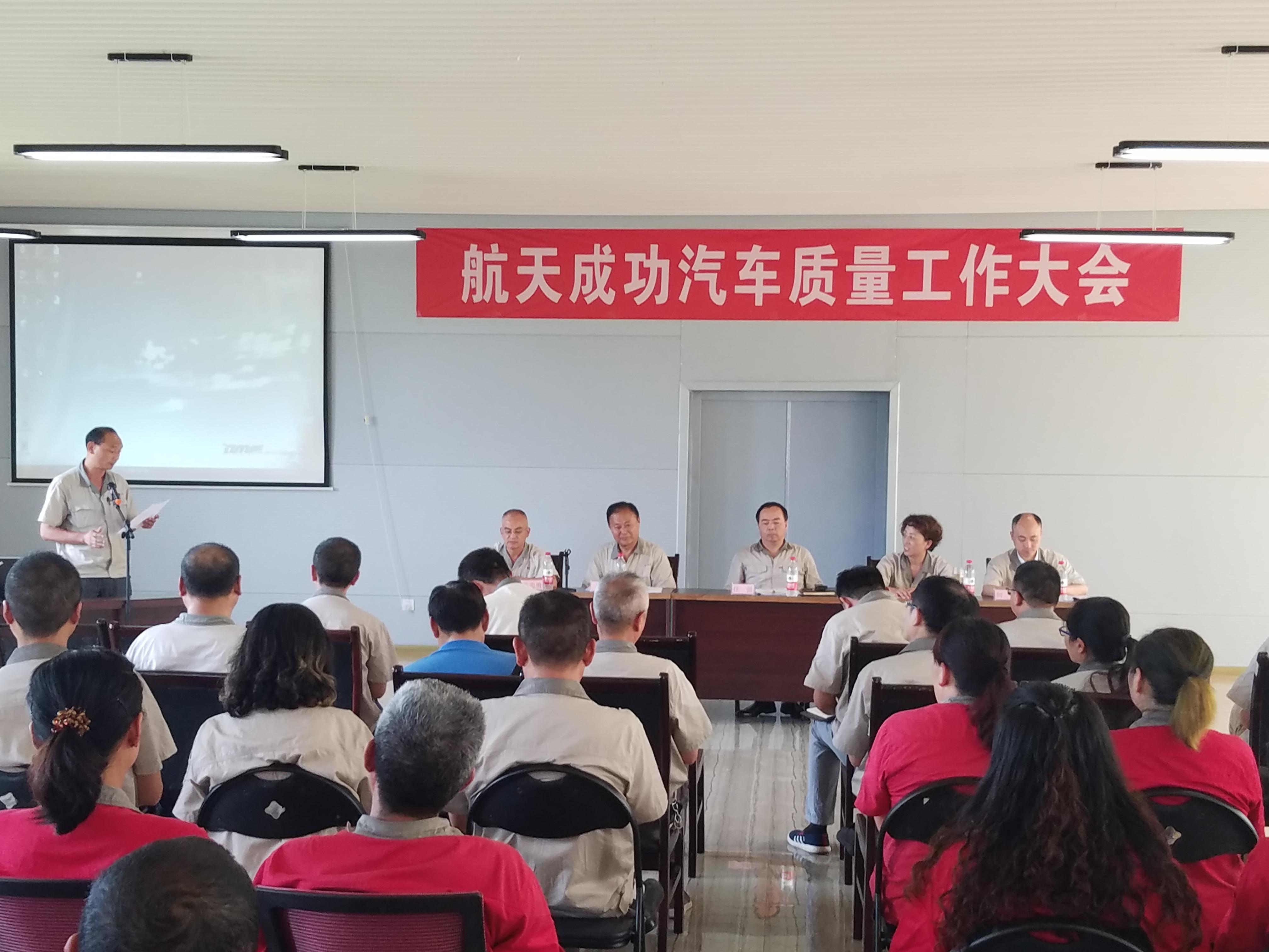 为确保今年下半年经营目标的实现,6月28日上午,遵义车厂组织召开了中层以上领导干部、班组长、工段长以上骨干人员及质量部全体人员参加的航天成功汽车质量大会。会议旨在提高广大干部,骨干员工及质量工作者的质量意识及质量责任感,强调在生产过程、投放市场后质量的重要性。