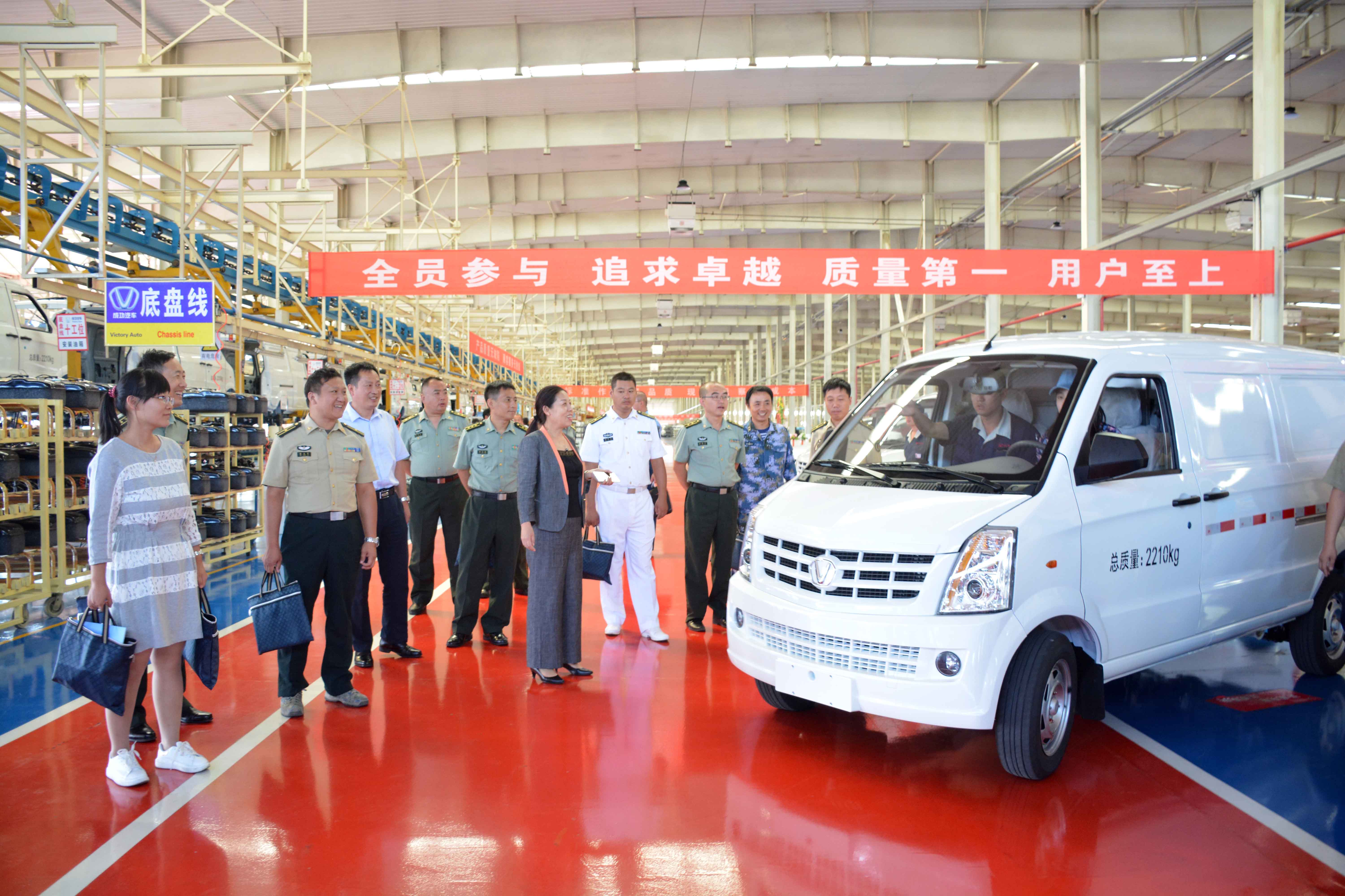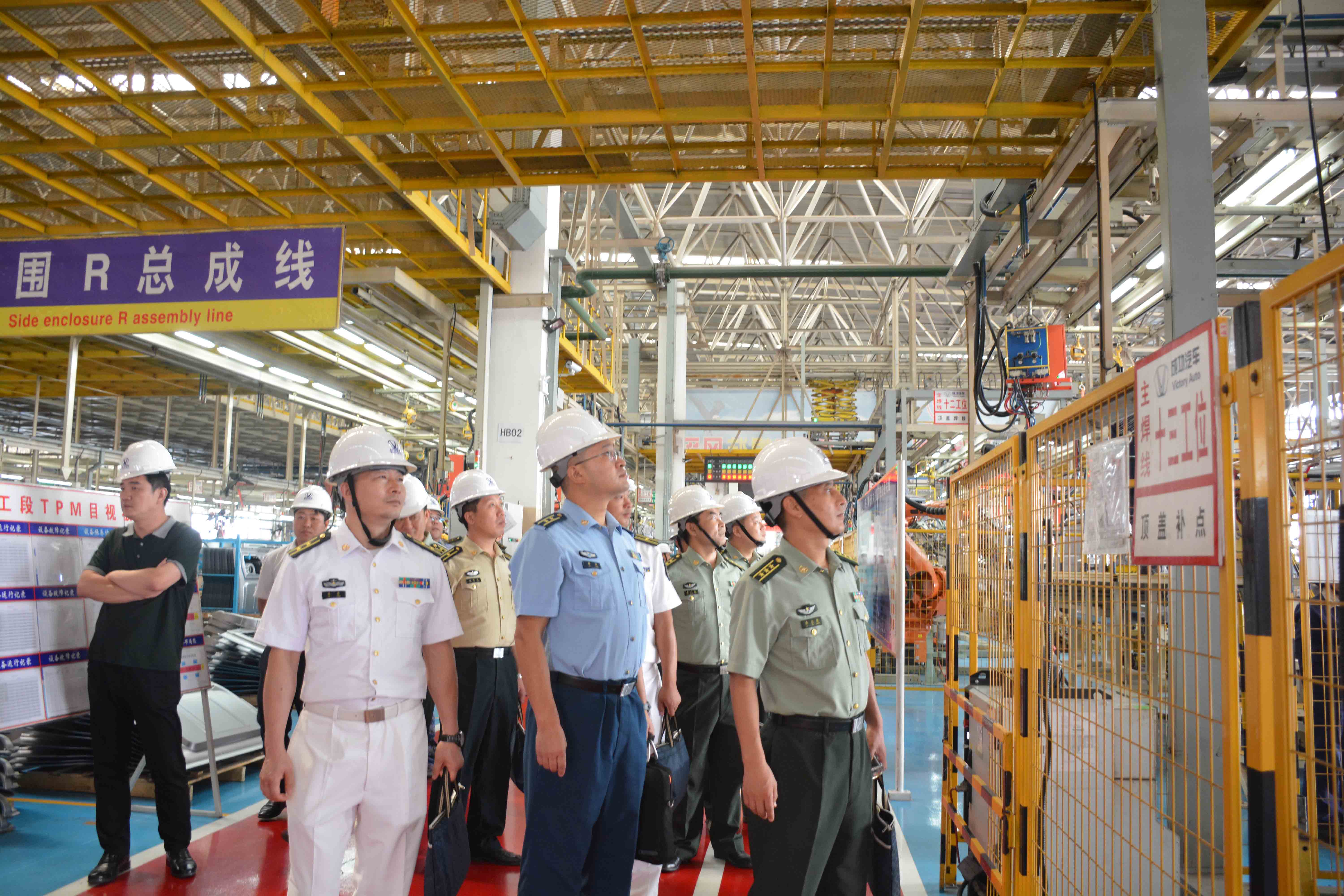 在冲压工房大门稍作停留后,身着戎装的军转干部就像一道亮丽的风景线特别的引人注目,在成功汽车事业部、成功汽车有关负责人的陪同下走进了正在忙碌的汽车冲、焊、涂、总装生产线,“零距离”感受成功汽车制造的整个过程,在参观调研期间,特别是解说员的详细介绍让这些军转干部初步了解了成功汽车,现代化的流水作业更让他们惊叹不已、耳目一新。这些军转干部还不时地进行交流、咨询,甚至用手机拍下了许多珍贵的镜头。