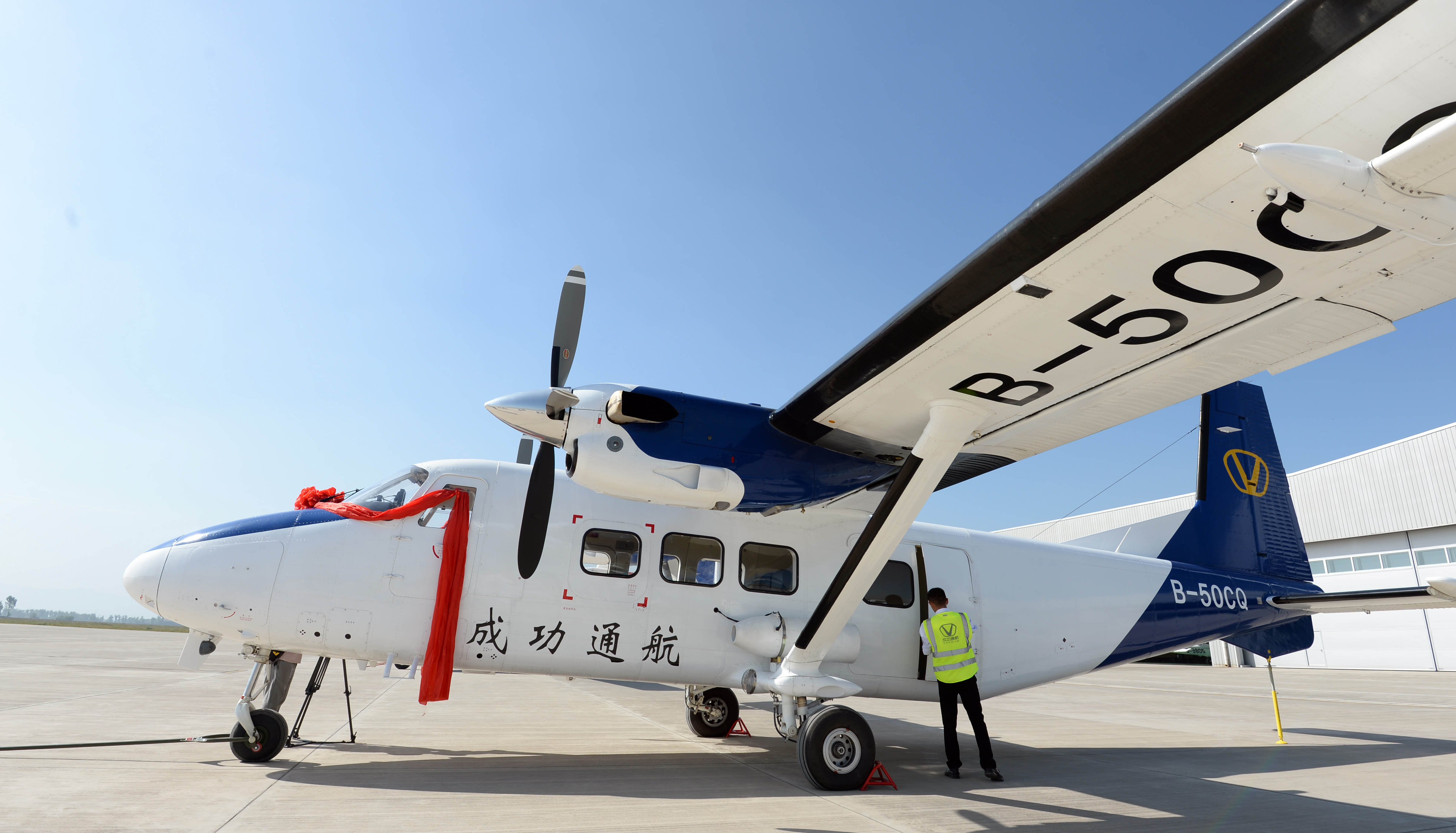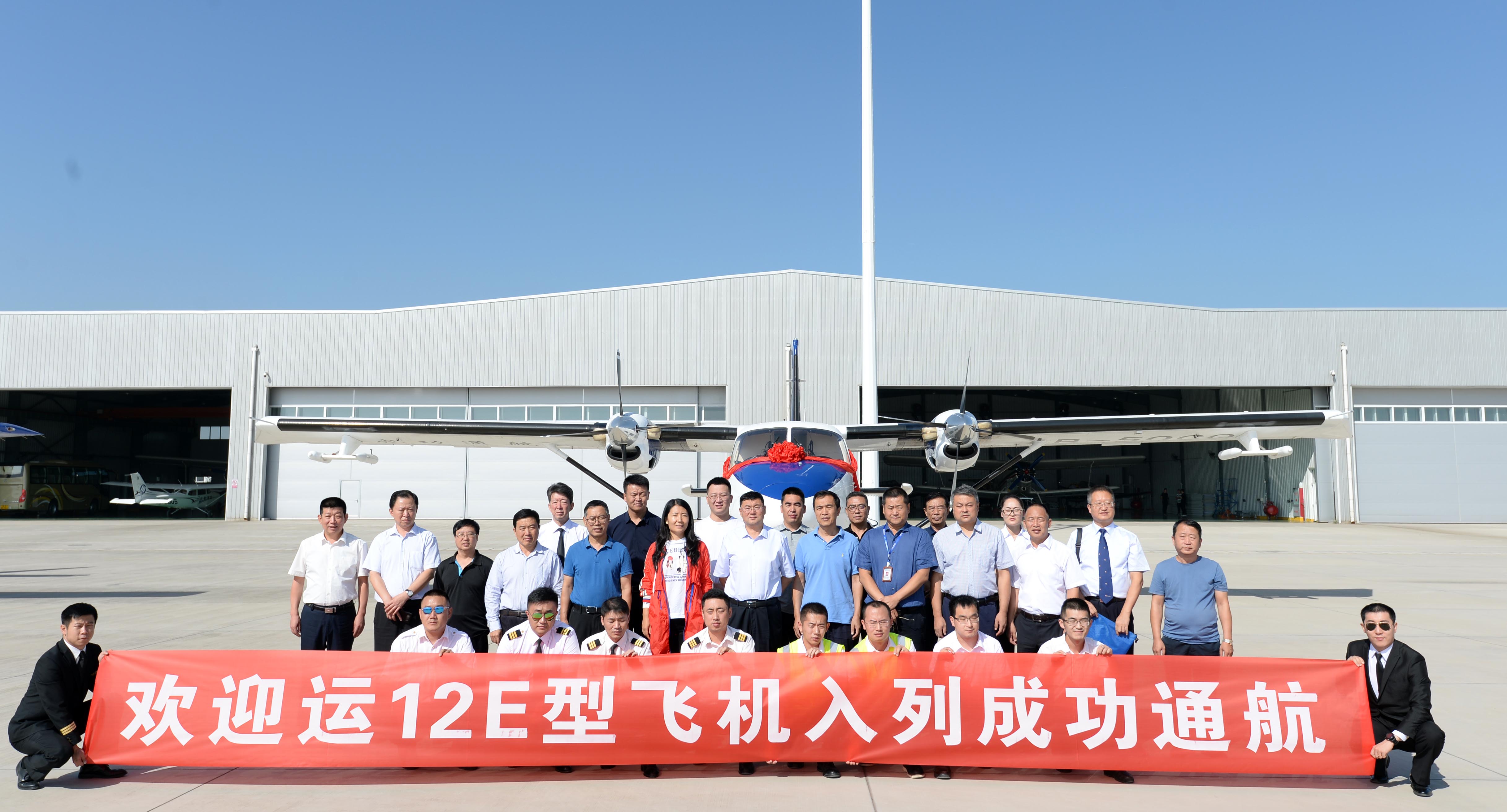 成功通航引进哈飞Y12E飞机交接仪式于9月4日在太原尧城机场举行。成功通航副总经理吴建生与哈飞副总经理刘辉南进行了飞机交接,双方负责人发表了热情洋溢的讲话。山西省人工降雨防雹办公室主任孙鸿娉、李培仁、副主任王功娃、太原航校校长郑全胜、马建兴,三晋通航总经理胡建华,太原航空仪表有限公司部长孔宪书,哈飞集团副总经理刘辉南,部长阴长庆,长清生物董事长史晓军和成功通航董事李建宏、石磊、马杰等嘉宾共同见证。