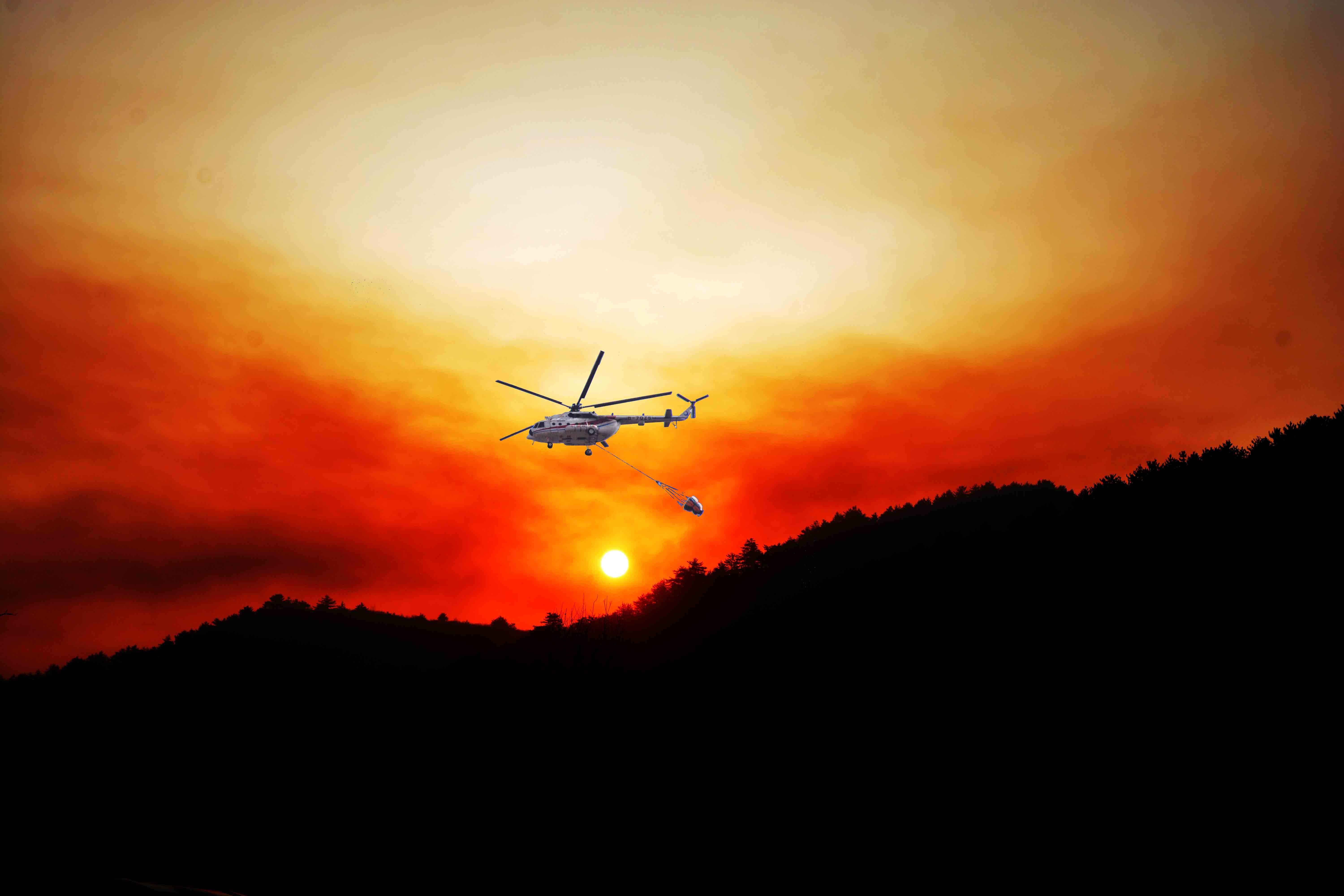 随着灭火救援指挥部清晰的指令,在尧城机场待令的成功通航B-8939长机率先启动引擎,6架灭火飞机编队起飞,呼啸着冲向浓烟滚滚的榆社森林山火现场空域,盘旋下降,找准进入点,冲向着火线,打开抛撒口,拉杆改出,上升高度……短短的十几秒,一连串复杂且精准的操作,灭火药剂像一条水龙,抛撒到正在熊熊燃烧的着火点,张牙舞爪的火海顿时变成了一汪青烟,翻腾着四散蔓延……